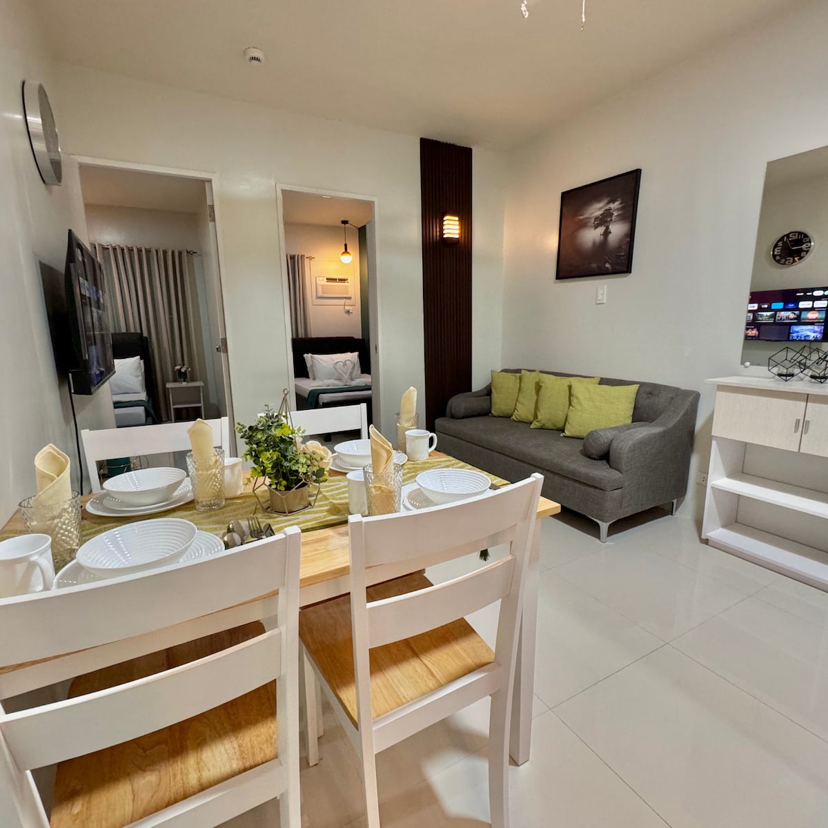 Your family will be close to everything when you stay at this centrally-located place. Near at Pristine Beach, With complete amenities. Gymnasium and pool outdoor. All you have to do is book and stay and enjoy!! Kitchen is complete with utensils up to electric appliances. A safe and quiet place that makes you relax and enjoy the city.