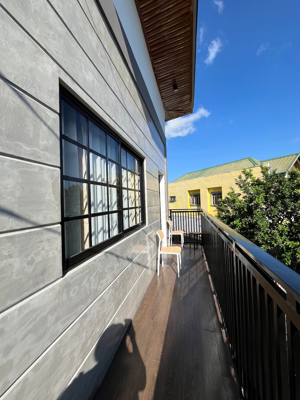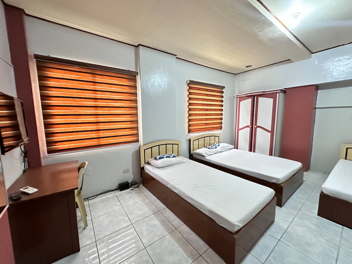 Our two-story guesthouse has 2 units, each w/ a floor area of 20 sqm and a private bathroom. The 1/F can accommodate 4 to 5 guests, while the 2/F is designed for up to 6 guests. Each unit is equipped with essential amenities for a comfortable stay, including air conditioning and hot and cold showers. The 1/F also includes a water dispenser and a smart TV. We strive to offer budget-friendly accommodations while ensuring a pleasant experience that prioritizes guest comfort and satisfaction.