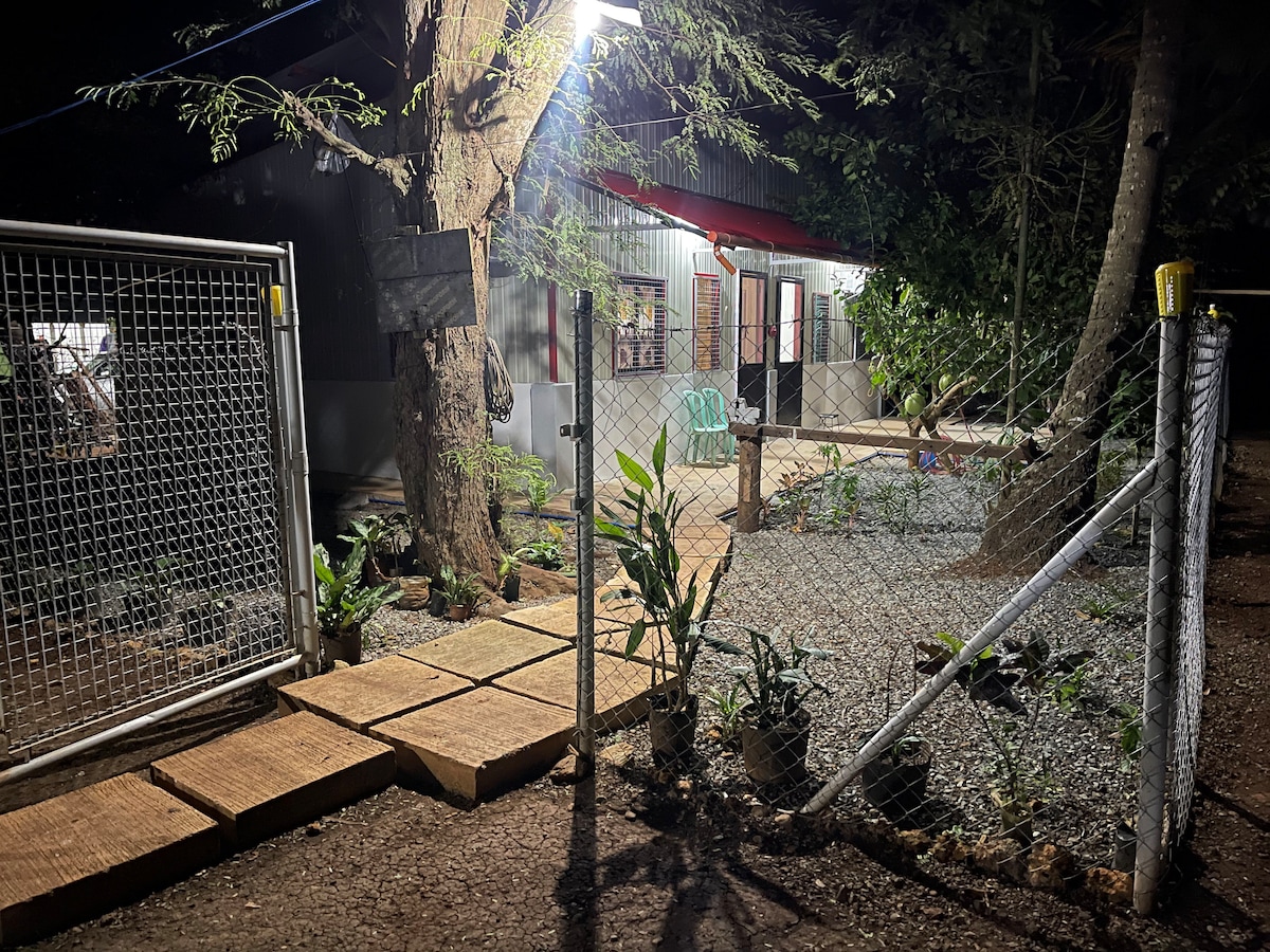 A cozy studio flat located within a large and well-kept garden. Up in the hills, the property is surrounded by sunrise and sunset views, popular with joggers. This unit is perfect for couples looking to get out of the city or digital nomads looking for a peaceful place to work. It has a fully equipped kitchen (stove, ref/freezer etc), dining table and private bathroom. Unit is air conditioned. Guests will have free access to a 18m saltwater swimming pool (located in Butanding Barrio, 3mins walk)