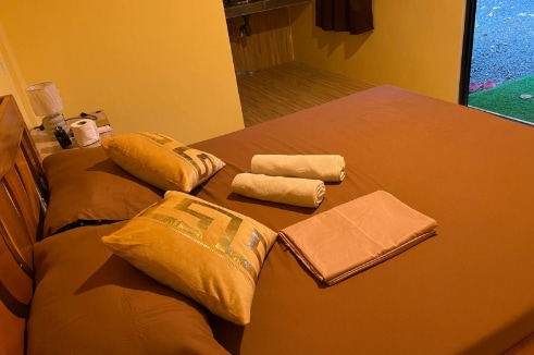 Our two-story guesthouse has 2 units, each w/ a floor area of 20 sqm and a private bathroom. The 1/F can accommodate 4 to 5 guests, while the 2/F is designed for up to 6 guests. Each unit is equipped with essential amenities for a comfortable stay, including air conditioning and hot and cold showers. The 1/F also includes a water dispenser and a smart TV. We strive to offer budget-friendly accommodations while ensuring a pleasant experience that prioritizes guest comfort and satisfaction.