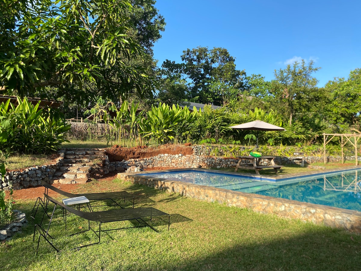 舒适的花园客房(空调、厨房、泳池)
