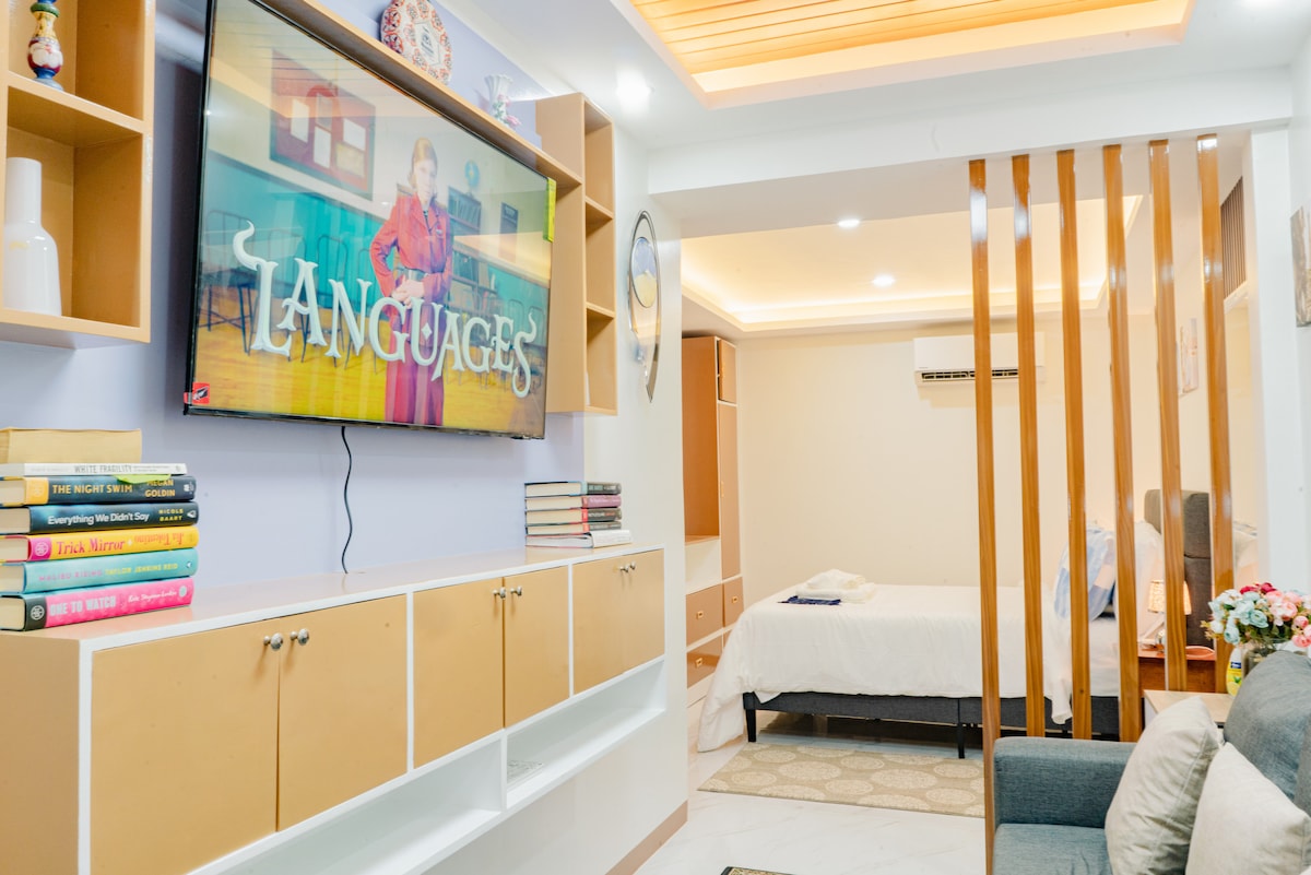 With Netflix,Google and Youtube!!!Bahay ni Takeshi is a family-run business.A queen bedroom with private bath room and tub.The place is located at the center of the city.Airport,department stores,market and coffee shops are near.Free pick-up and drop at the airport.