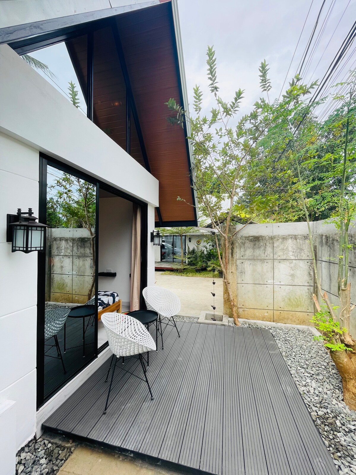 INCLUSIONS: • Private balcony with a small garden area • Air-conditioned bedroom with comfortable linens • Private toilet & bath with shower • Spacious living area with Netflix-ready TV • High-speed WiFi (PLDT Fibr – 250 Mbps) • Access to a fully equipped shared kitchen • Refrigerator, cooking utensils, and dining bar counter • Fresh towels and basic toiletries provided Guest Access Additional Services (Upon Request) • Airport transfer • Van transfers around Palawan • Tour packages/ Rentals