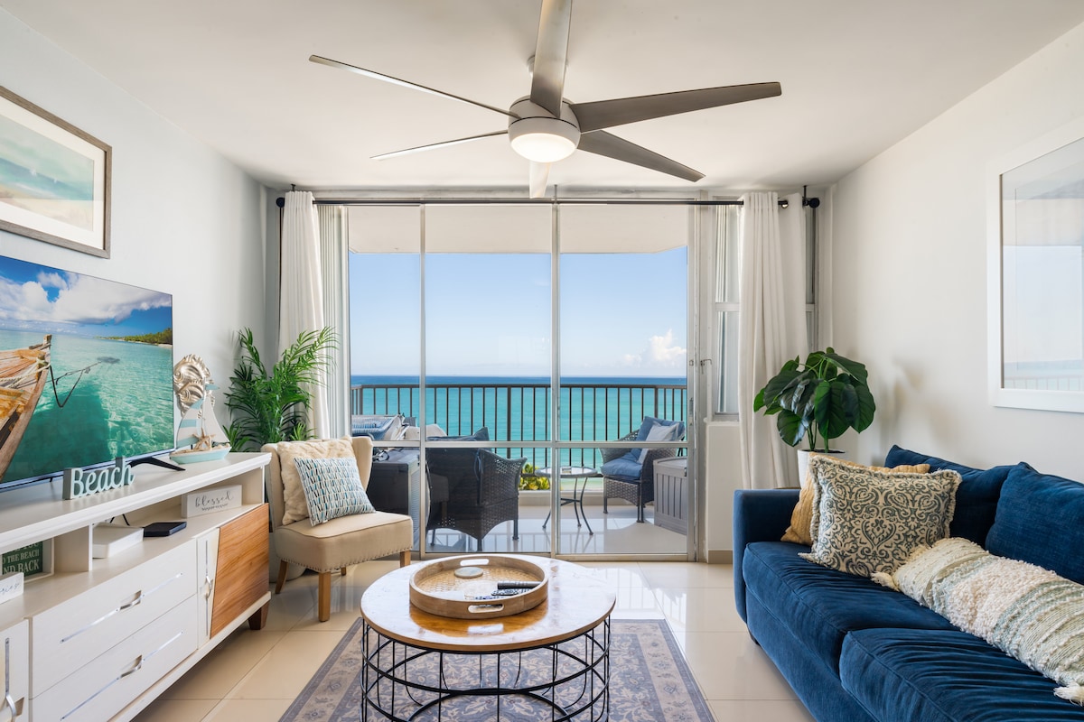 This is a 15th floor 1 bedroom apt. steps from the beach with a spectacular beach front view from the balcony in Tower I. It has high speed internet, 2 Smart TV's, air conditioners, washer, dryer and fully loaded kitchen. It is 35 minutes from Luis Muñoz Marin Airport and Old San Juan. Additionally it is nearby from El Yunque Rainforest, and 2 min. from the "kioskos de Luquillo & Luquillo Beach". It accommodates 2 people with private parking for rental vehicle and 24/7 security.