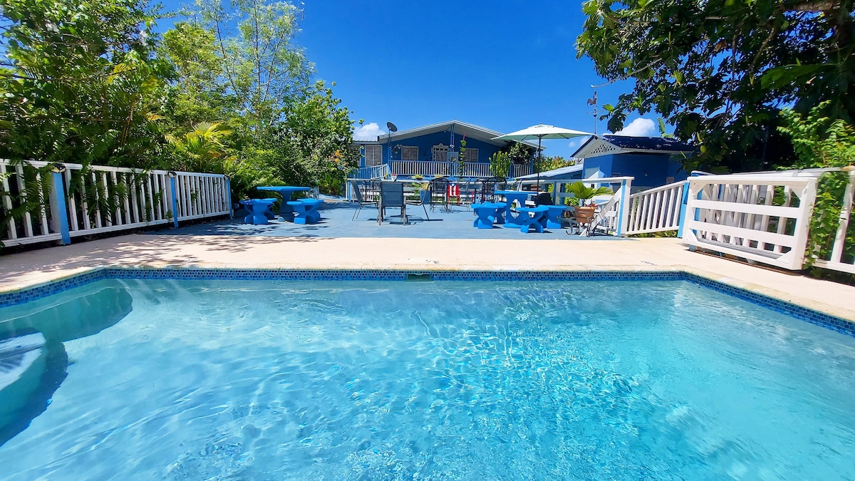 Bienvenidos a La Casa Azul B&B. Nuestra Casona está ubicada en la costa oeste de Puerto Rico; entre los pueblos de Aguada y Rincón. Esta es una de las cinco acogedoras habitaciones privadas de nuestra hospedería. Disfrutaras con nosotros de nuestra piscina, desayuno local incluido, bosque privado y nuestro cultivo de cacao donde damos el Cacao Tour. A solo minutos encontrarás las mejores playas y atractivos turísticos de la región. Queremos que vivas a lo Boricua!