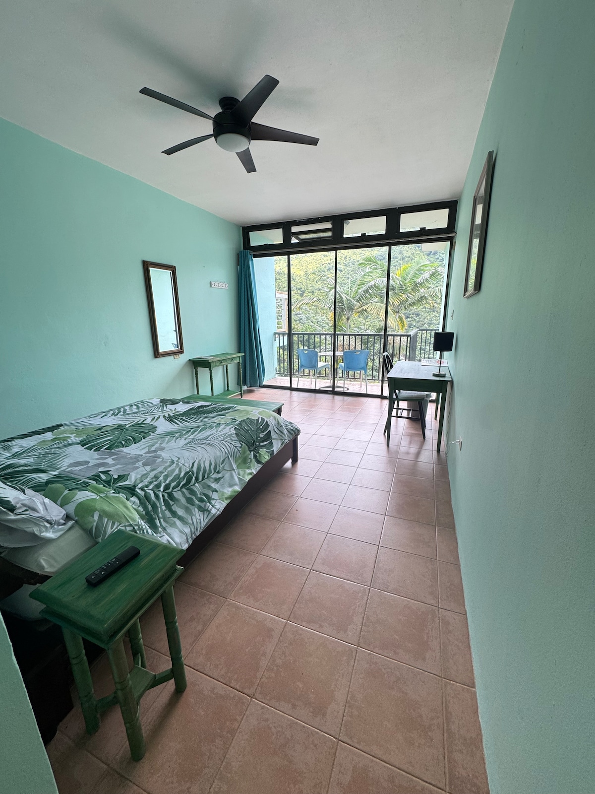 Monte Sagrado Reserve is a remote adults-only 100 acre working coffee farm located in the mountains of Utuado. We are located next to a small lake, and within a short walk from River Tanama, which runs through the hacienda grounds. The Revel Room at the Monte Sagrado Reserve has great views, a nature balcony. It is close to nature activities, hiking, and restaurants. You’ll love the views, the people, and the ambiance. My place is good for couples, friends, and solo adventurers.