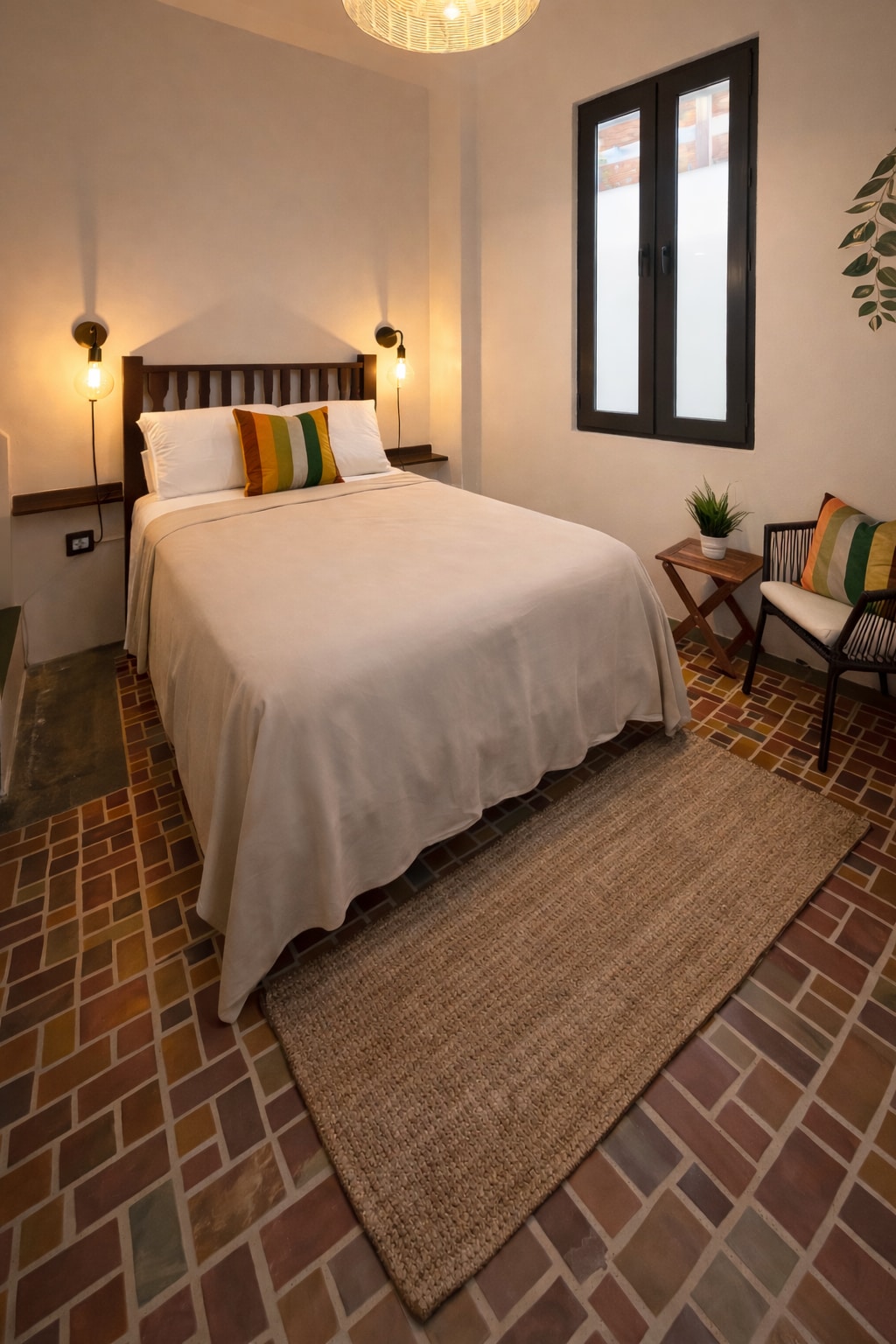 Experience comfort and style. This is our smaller room but very bright and comfy. Our rooms are equipped with a private bath, mini fridge, free Wi-Fi. Unwind by the pool or warm Jacuzzi, Enjoy the nearby beaches and rainforest. Test your luck at the Tropical Casino, or visit the San Miguel reservation for bird watching. you can try horseback riding at Carabalí Park through the forest and along the shore. Stores and restaurants are 5min walking distance. Beaches are 15min walking 5 min by car