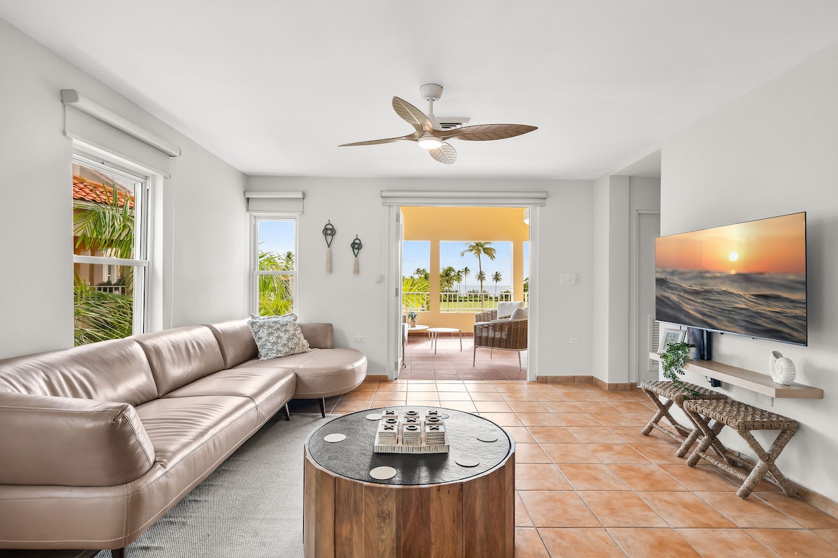 This beautiful villa is just a few steps away from the beach in the gated resort of Palmas del Mar! An extensive beach area, pools, restaurants, tennis courts, golf courses, shops and even a Marina are all located inside the complex and are only a car or golf cart ride away. If you prefer staying in, the villa comes equipped with everything you may need to make it your home away from home. The tranquil feeling of Palmas del Mar is truly unique and we can't wait for you to experience it!