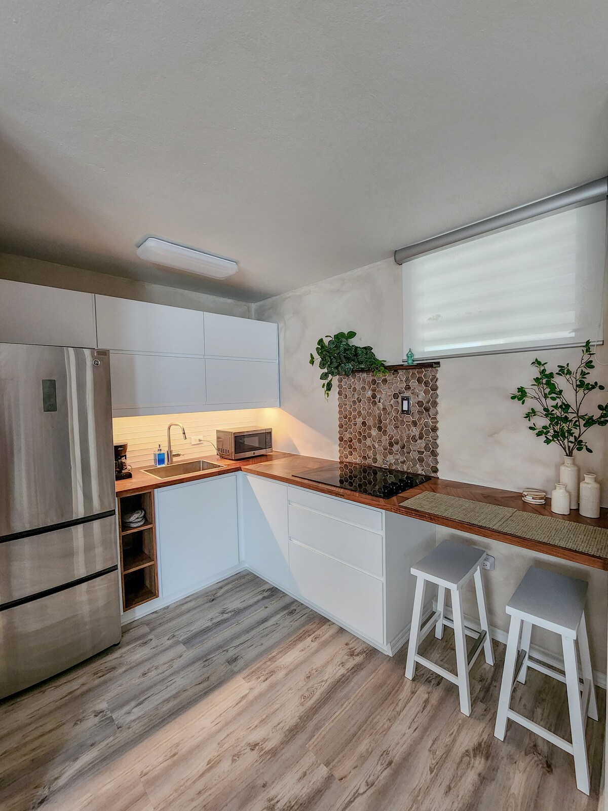 Welcome to your own private paradise! This stunning 1-bedroom house has a private pool, laundry, fully-equipped kitchen, living room, workspace, and king-sized bed bedroom by the pool. But that's not all – the interior garden provides a lush oasis to escape and unwind. Perfect for couples seeking a luxurious retreat, this home has everything you need for a comfortable and convenient stay. Located in a peaceful neighborhood, with nearby attractions, book now for the ultimate getaway experience!