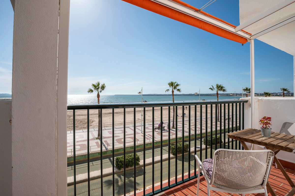 Geräumige 94 qm große Wohnung direkt am Strand mit Blick auf die gesamte Bucht von Cádiz von 2 Balkonen. 3 Schlafzimmer mit Meerblick mit jeweils 2 Schlafmöglichkeiten. Ein Badezimmer mit Dusche und ein Gäste WC. Vollausgestattete Küche mit Geschirrspülmaschine, Waschmaschine und allem was man normalerweise auch zu Hause hat.