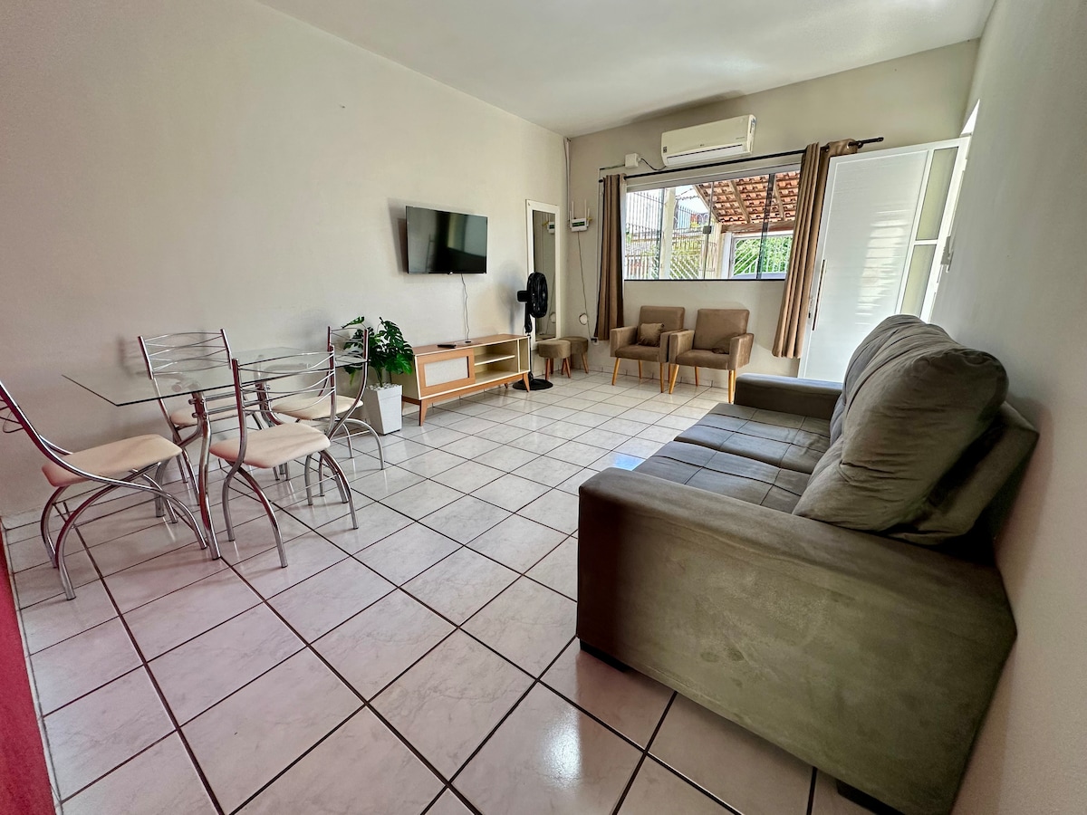 Sua família vai estar perto de tudo ao ficar neste lugar bem-localizado. Aconchego e tranquilidade, há 5 minutos a pé do centro comercial, possui cozinha, churrasqueira, ar condicionado, ventilador e utensílios domésticos. Ideal para quem quer comodidade.