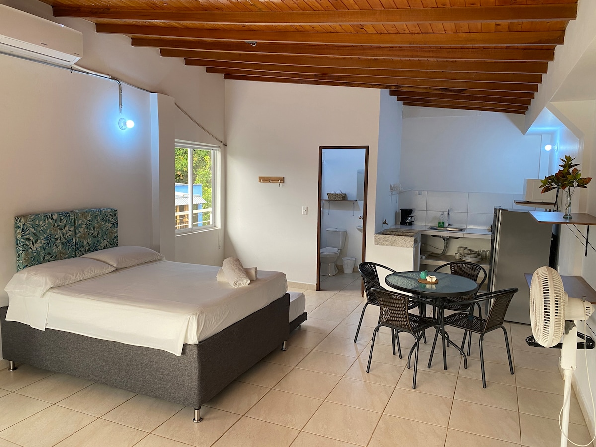 Relájate en esta escapada única y tranquila. Ubicada en el Santorini colombiano, lugar mágico que te transporta a las islas griegas, con sus callejones empedrados y sus fachadas blancas llenas de hermosos jardines te hacen sentir en Europa. Parqueadero privado, aire acondicionado, Wifi y TV por cable complementan tu descanso. A escasos metros de restaurantes y de la espectacular plaza del barrio La Aldea