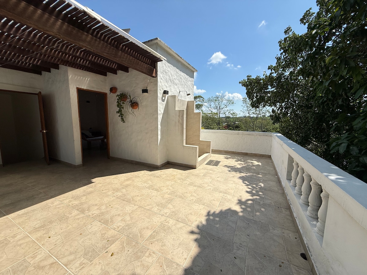 Create unforgettable memories in this unique and familiar lodging. In our cabin you can listen to the birds singing, feel the tranquility of nature and enjoy a beautiful view of the Cordillera Oriental and the Santorini Colombiano. You will be able to enjoy natural and crystalline waters within a 5 minute walk; wildlife watching. It is also only 15 minutes away from Hacienda Nápoles