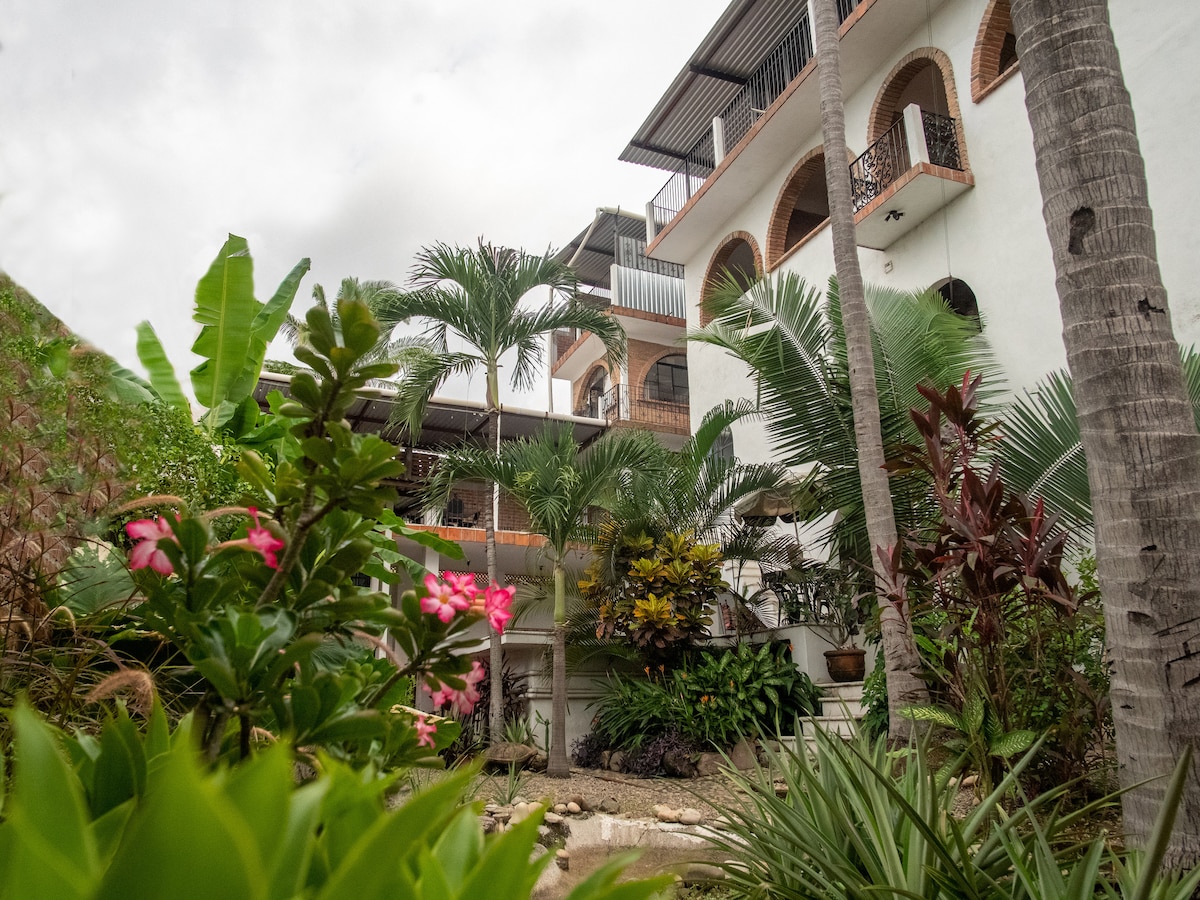 Your relaxing corner in the heart of Puerto Vallarta’s Romantic Zone, known for its vibrant, inclusive, and LGBTQ-friendly atmosphere. 🌈 Private Queen room with rustic-meets-modern style and a warm, inviting vibe — perfect for couples or solo travelers looking for comfort, privacy, and good energy.