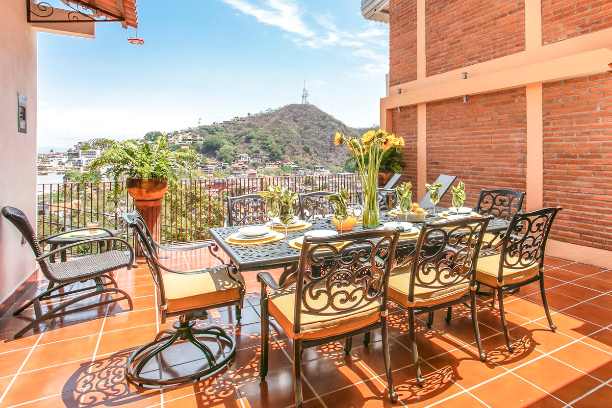 Plunge into the private refreshing pool and marvel at the panoramic views across the bay. This villa reflects old-world Mexican sophistication featuring exposed wooden beams, hand-painted tiles, and colonial antiques alongside contemporary amenities. Our villa sits high on a mountain ridge with panoramic views of the Bay of Banderas, Puerto Vallarta to the north and Los Arcos to the south. The location and collection of villas is widely acknowledged as being some of the best PV has to offer due to the unparalleled location and the gorgeous architectural details of our enclave of villas. This is authentic coastal Mexico -- all the modern luxuries in a stunning setting. It is our paradise and home away from home, and we take great pride in sharing it with our guests! The villa is yours! From front to back and top to bottom! I am always available by email. We also have a property manager in PV, a housekeeper, gardener/pool boy, and regular maintenance services. As a result any issue that comes up can typically be handled quite swiftly by our local staff. Our maid cleans twice weekly as a part of our rate, the pool/garden service occurs every other day, so guests typically have someone to help them and talk to, with any needed manner. Our staff has been with us for many many years and are quite skilled and experienced in serving our guests. This villa is on Puerto Vallarta's South Shore, which is set among mountains covered in a lush jungle next to Banderas Bay. It's an upscale area filled with incredible nature and luxurious homes. Some of the best beaches are right outside the door. Our secluded and exclusive gated villa community is just moments from Puerto Vallarta's charming and historic Romantic Zone, minutes from town and only ten miles from Puerto Vallarta Airport. Cabs are readily available and for $7 you are in town in ten minutes. The coastal road bus stops in front of our villa enclave every 15 minutes, and for $0.50 you can be in town in 10 minutes flat!! Private parking is included. The villas have security on the premises from 7PM to 7AM every day. Any problems or questions that arise in the evening, can be handled by our security staff. For families with small children, we have pack-n-play cribs, boogie boards, beach towels, and other gear needed for guests who love the beach!