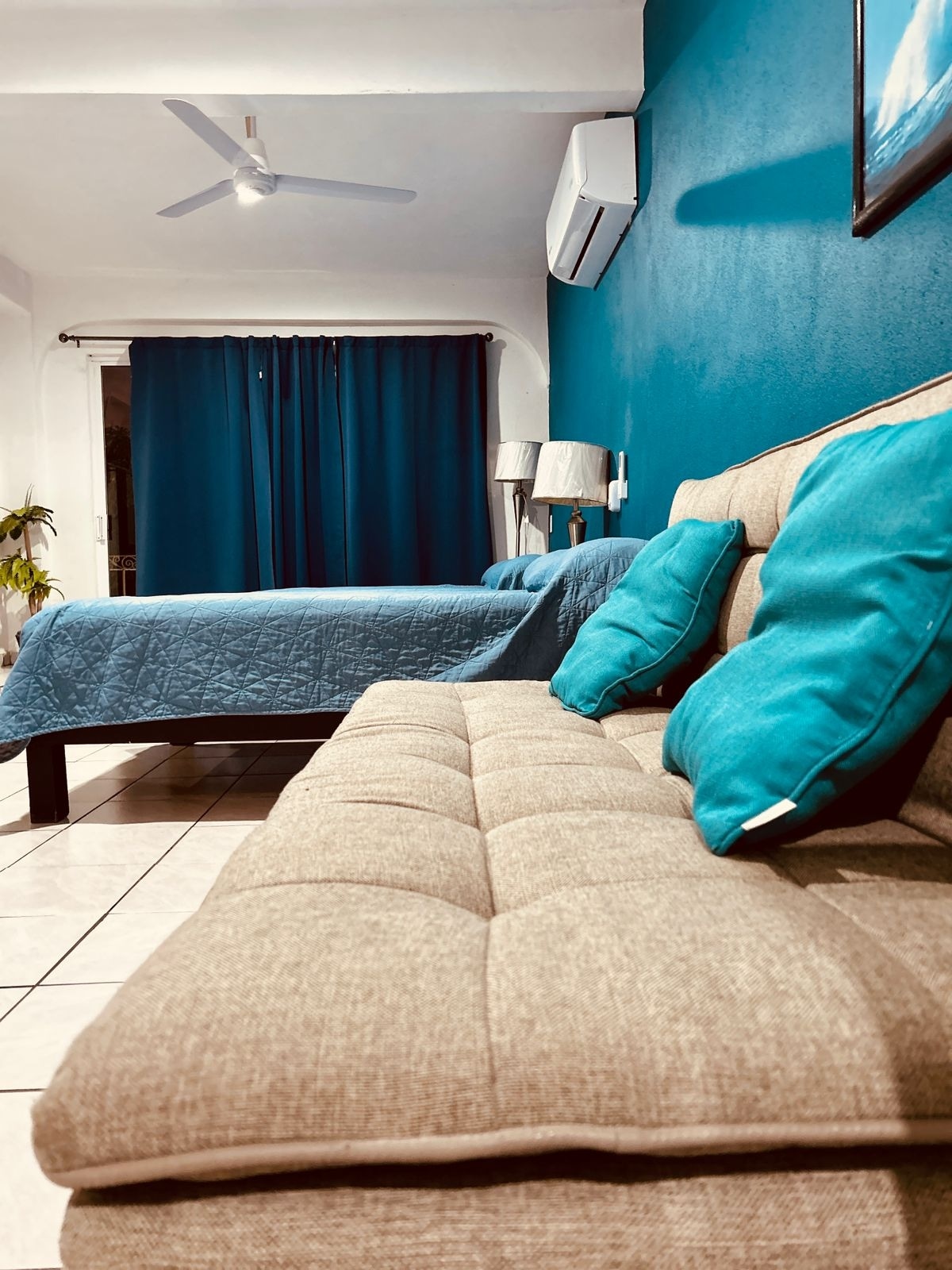 🏖 Spacious Studio Steps from the Beach – Experience Authentic Vallarta! 🌴 Includes 1 bedroom with A/C, 60” TV, full kitchen, bathroom with hot shower, living room, dining area, and a private patio to relax outdoors. Enjoy super fast WiFi, perfect for remote work. Near Romantic Zone, Hotel Zone, Malecón, and great restaurants and cafés. Walk everywhere and enjoy authentic Vallarta while staying in a quiet, stylish, well-equipped space. Ideal for couples or solo travelers.