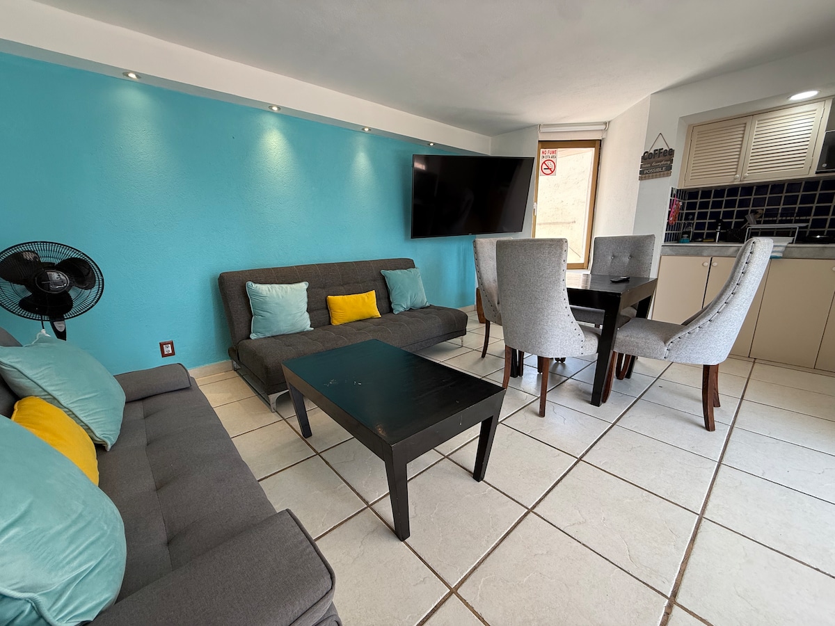 Welcome to your dream getaway in the heart of Mexico's vibrant town of La Cruz de Huanacaxtle (located equidistant from Punta Mita and Puerto Vallarta) ! Nestled on the third floor of the Amura building within the charming Alamar development, this stunning open-plan studio is designed to captivate your senses and provide you with an unforgettable vacation experience. Features kitchen, home office workspace, bed and sofa. Comfortable seats on balcony and art work.