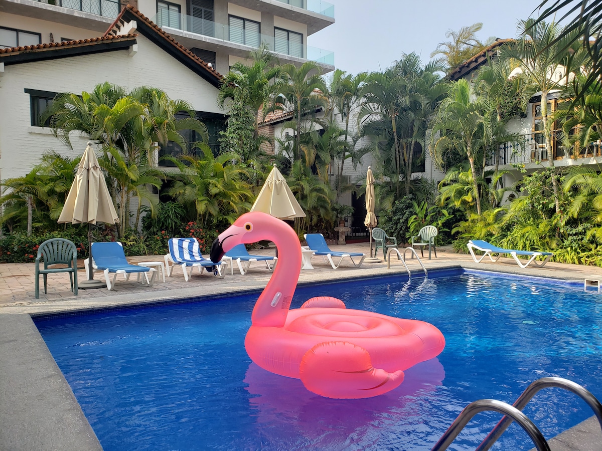 Suite 1 recámara estilo rústico mexicano en planta baja en SUITES FLAMINGOS. Sala, cocina, comedor, wifi, televisión por cable y aire acondicionado. Disfrute de la vista al jardín y de la tranquila zona de piscina común. Este condominio ha sido tratado con sumo cuidado e incluye todo lo necesario para su completa comodidad. !A solo una cuadra de la playa, del supermercado Chedraui, paradas de autobús y marina acerca. Recomendado para personas viajando solas o parejas que buscan tranquilidad.