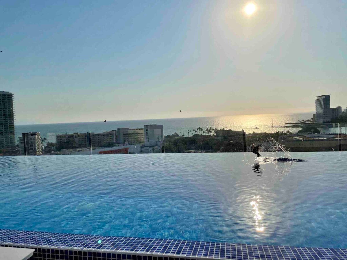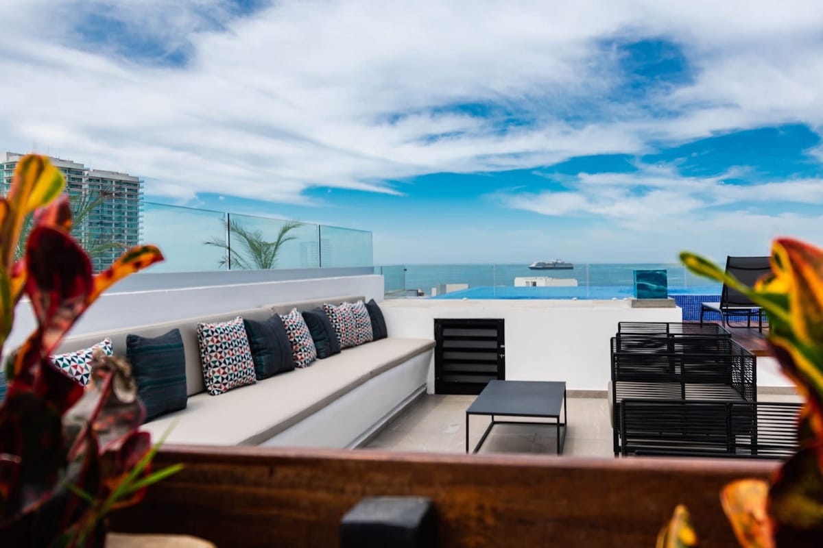 - Amazing roof garden with infinity pool and stunning ocean views in one of the hip areas: Zoho - Wi-Fi, Smart TV, well-equipped kitchen, washer, A/C, parking, gym, kids area & more! - 15 minutes from downtown Vallarta and 25 minutes from Riviera Nayarit - Close to shopping, maritime terminal, hospitals, restaurants, nightlife & activities - Book now and experience the best of Puerto Vallarta in style and comfort!