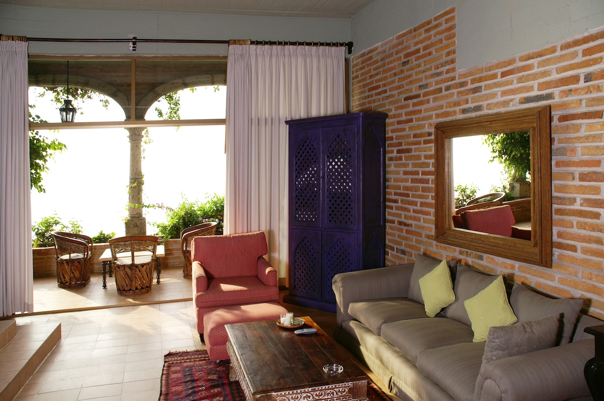 JR suite romántica y privada, tiene terraza con jacuzzi , una cómoda y privada salita techada, con vista al mar, mesa para tomar alimentos en la terraza privada. Esta exclusiva habitación ha sido bellamente decorada con un estilo único en tonos frescos y brillantes; de colores sólidos, ambientación mediterránea y con toques de la artesanía tradicional de México y otras latitudes.