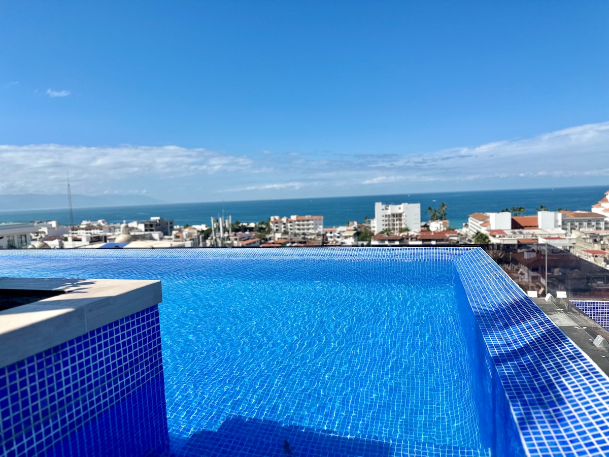 Look out to the pacific ocean from this dramatic furnished condo. Enjoy the heated infinity and rooftop pools overlooking of the bay of banderas. The incredible condo is situated on the 8th floor, you will be involved in a lovely and romantic oceanfront views. It is conveniently located next to the one of the most popular beaches "Los Muertos" and "Zona Romatica" side that you will find shopping, art galleries, great restaurants, clubs and trendy bars.