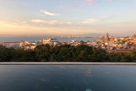 Casa Ke’aku is a hidden gem in Puerto Vallarta for those who appreciate art, design, and refined style. Located in the Romantic Zone, just three blocks from the city’s vibrant gay nightlife, it features contemporary Mexican art, curated interiors, and designer furniture. The rooftop boasts ocean views, an infinity pool, jacuzzi, and stylish bar—perfect for sunsets. A stay here is pure inspiration, comfort, and coastal charm. PV is a dynamic city, with buildings everywhere, we have one behind.