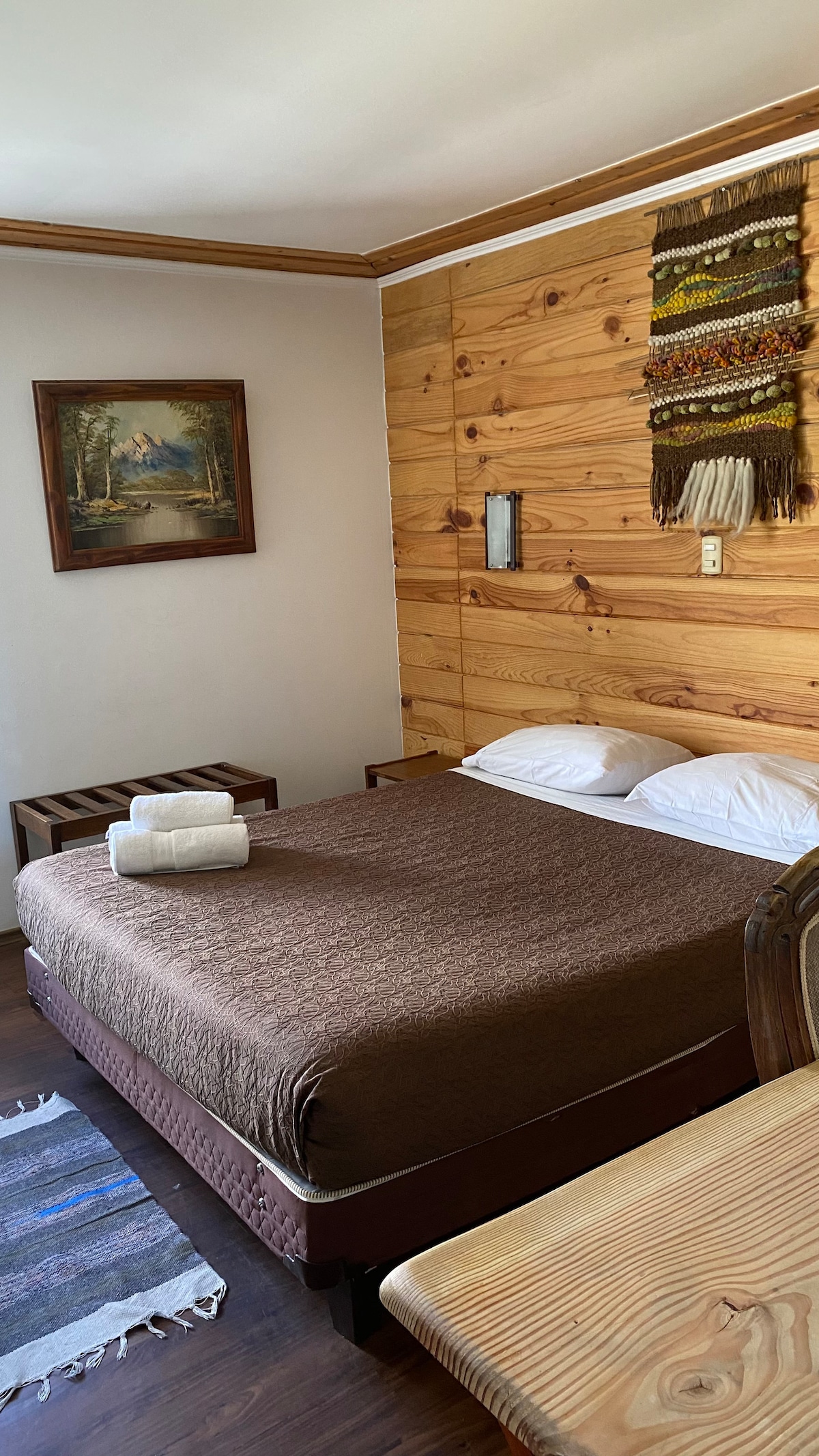 Diseño minimalista inspirado en aves del sur de Chile, chimenea de leña para noches íntimas y terraza privada rodeada de naturaleza, ideal para desconectar. Detalles boutique que inspiran calma: espacio minimalista donde cada elemento tiene propósito. Ubicación tranquila, cerca del lago, restaurantes y rutas turísticas. Perfecto para parejas que buscan desconectar con estilo. Reserva ahora y vive una escapada minimalista con alma propia.