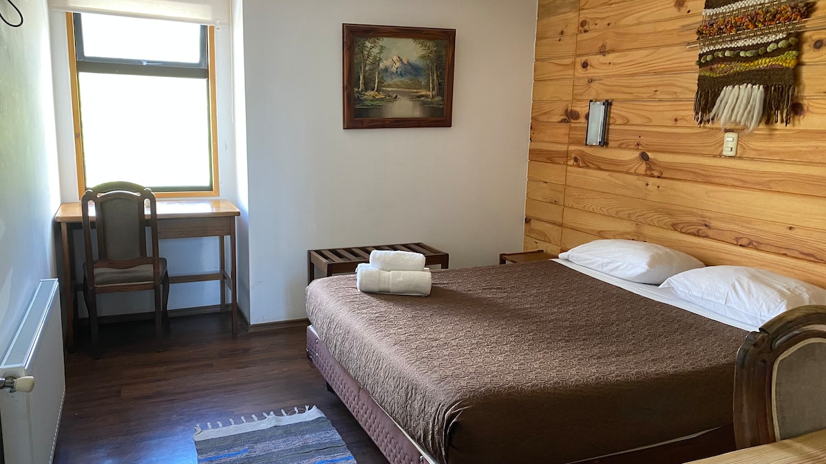 Diseño minimalista inspirado en aves del sur de Chile, chimenea de leña para noches íntimas y terraza privada rodeada de naturaleza, ideal para desconectar. Detalles boutique que inspiran calma: espacio minimalista donde cada elemento tiene propósito. Ubicación tranquila, cerca del lago, restaurantes y rutas turísticas. Perfecto para parejas que buscan desconectar con estilo. Reserva ahora y vive una escapada minimalista con alma propia.