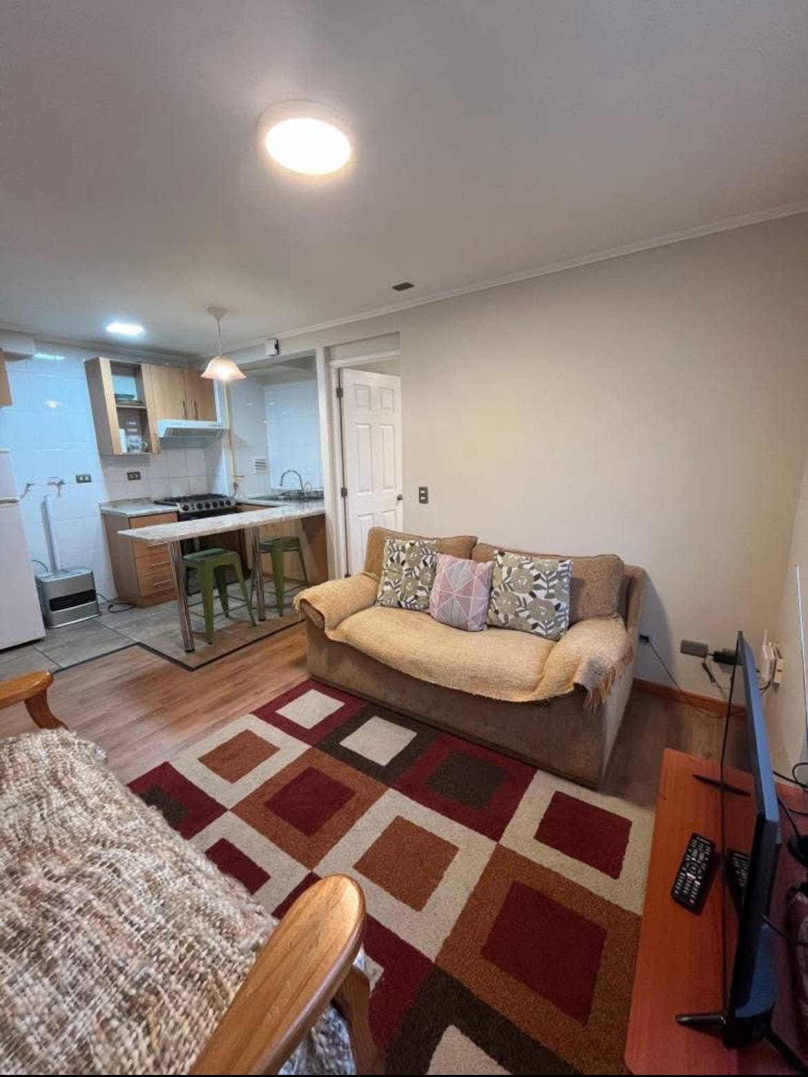 Located at just 3 blocks/5 min from Lake Llanquihue. There are 2 supermarkets across the street, a mall, restaurant, and delicious places to eat or just look at beautiful heritage houses from the windows. Spacious and comfortable rooms, 2 en suite bathrooms. The building has terraces, meeting room with internet and laptops, a gym with panoramic view to Lake Llanquihue, laundry, barbecue, private parking, and alarm. A dreamy place for couples, business travelers, families, or adventurers like us.