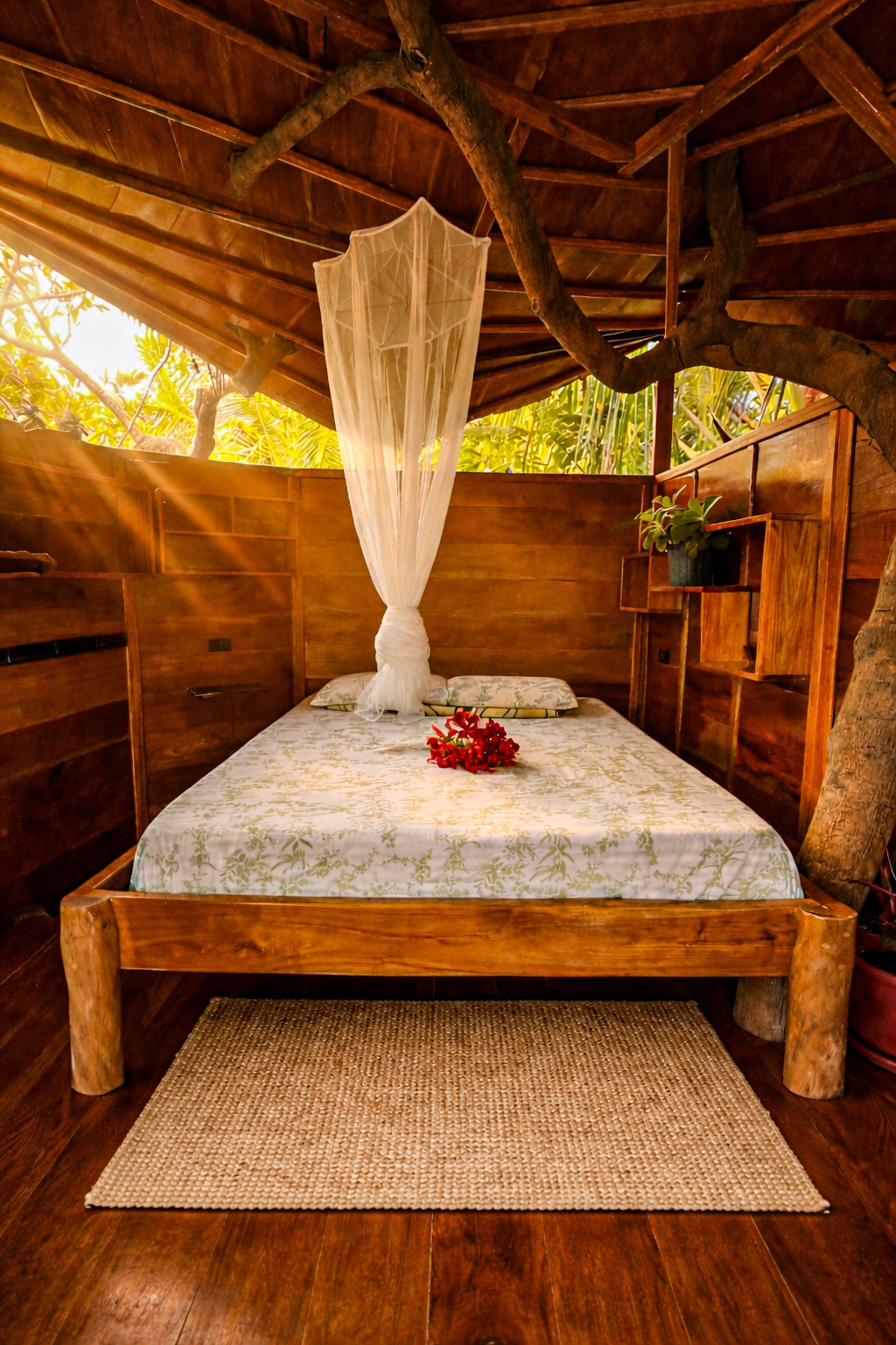 A private retreat located on the upper level of a treehouse, designed for guests who value calm, nature and simplicity. Ideal for couples or quiet travelers, it features a comfortable Queen bed, private bathroom and an intimate atmosphere surrounded by greenery. A place to slow down, breathe deeply and rest under open skies, gentle breezes and peaceful nights that invite reconnection with what truly matters.