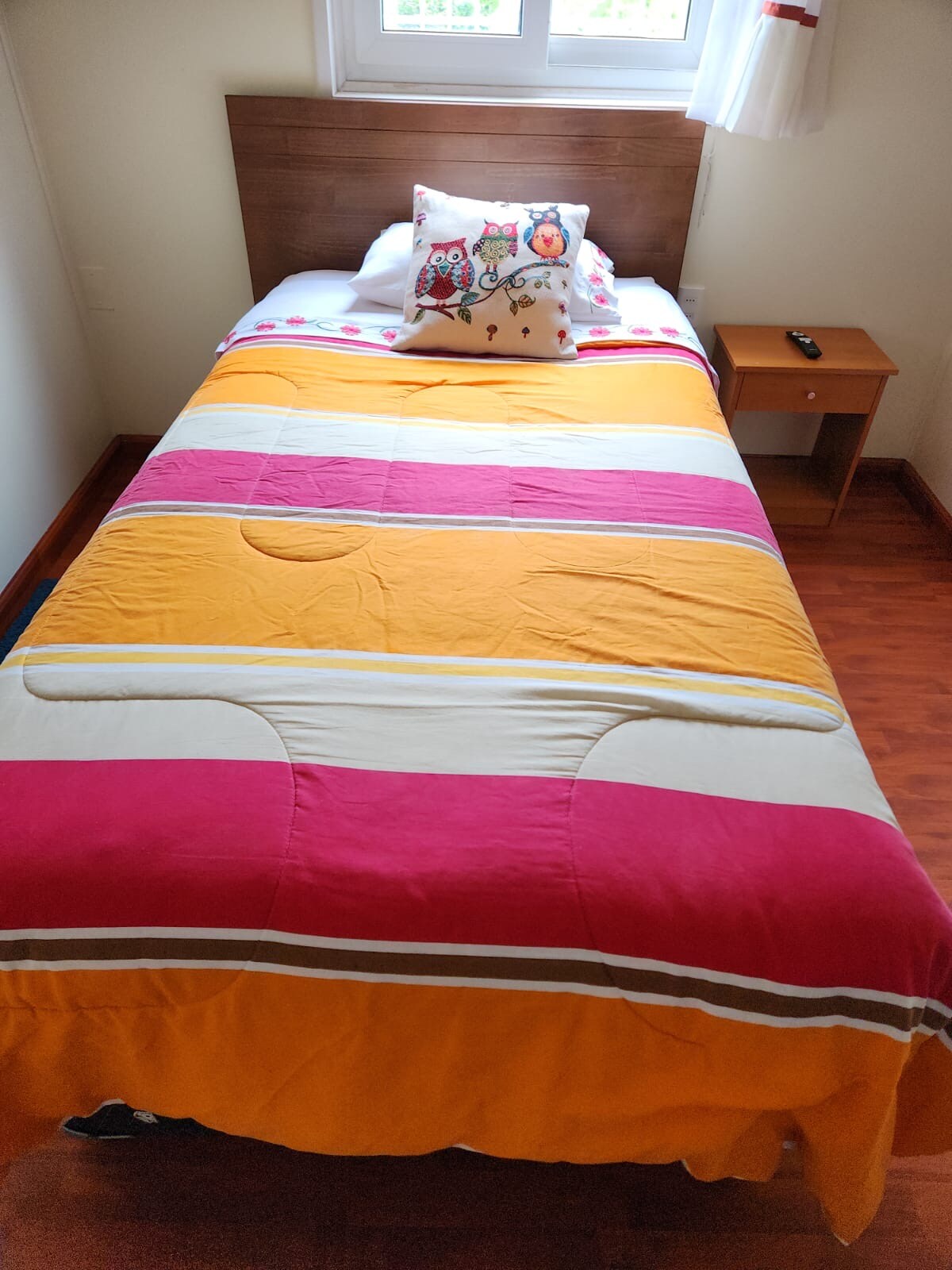 Un dormitorio de cuatro disponibles. Baño privado, entradas independientes, camas matrimoniales y camarotes. Además ofrecemos calefacción, agua caliente y zonas comunes compartidas como la cocina y living comedor con estufa a leña.