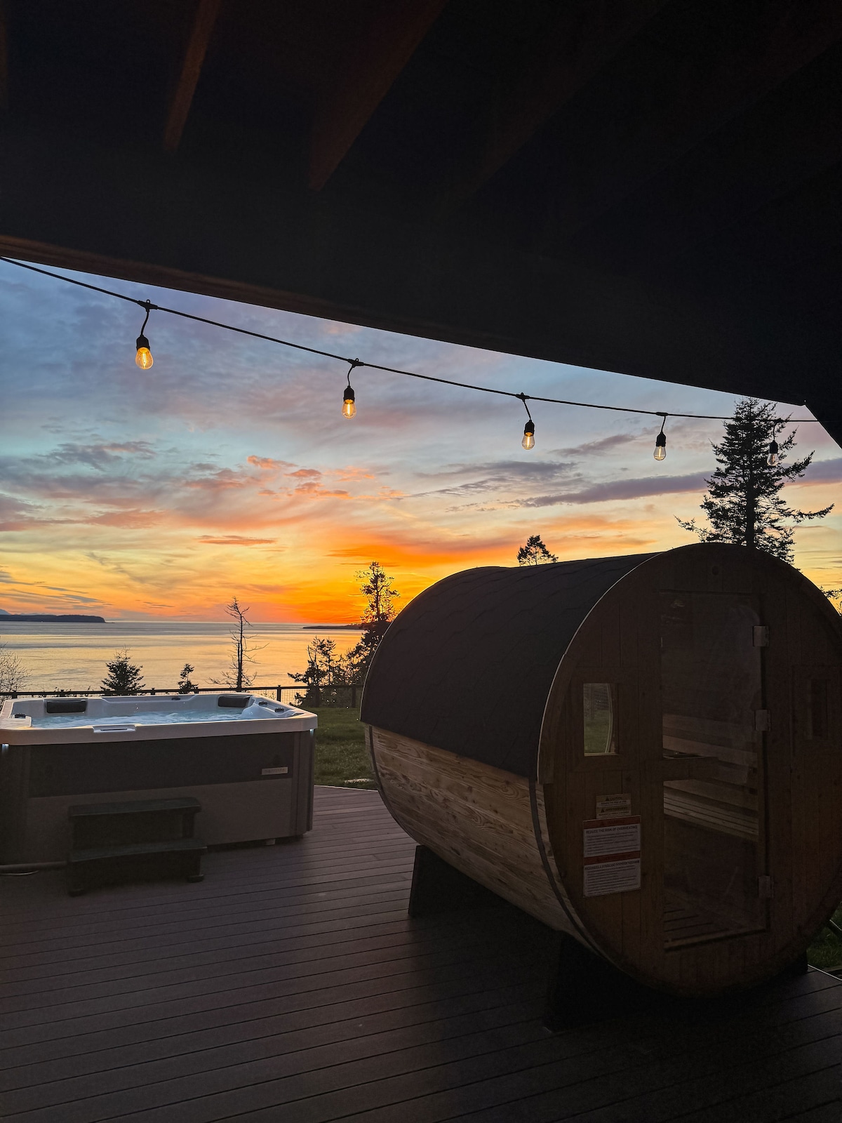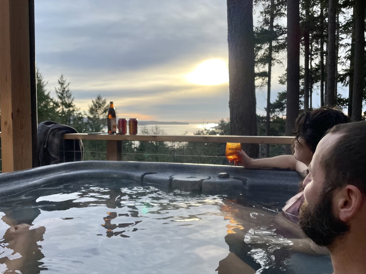 ⸻ This tiny home’s most captivating feature is its breathtaking view down Guemes Channel. Imagine soaking in the hot tub while taking in the peaceful trees and water scenery — kick back, relax, and truly unwind. Thoughtfully designed touches throughout make this small space feel warm, inviting, and perfectly suited for a relaxing getaway. This incredible location offers the best of all worlds. Romantic, serene, and unforgettable — you’re sure to make lasting memories at The Eagle’s Nest.