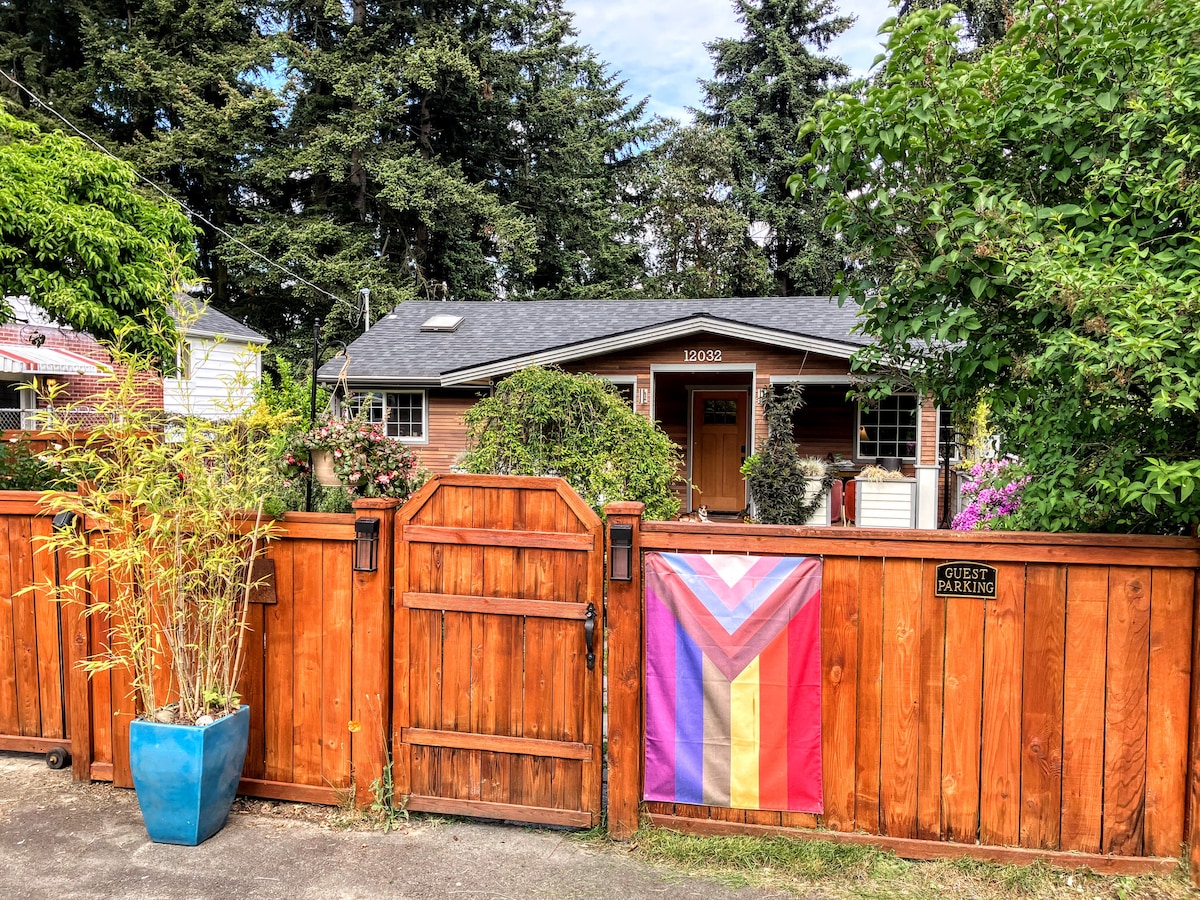 Cozy, clean, charming: Welcome to our classic Seattle craftsman! As proud locals, we're here to help you enjoy Seattle. Whether you take the day to work from home, walk to Phinney Ridge's vibrant restaurants and shops, or hike the Cascades, we invite you to relax in our home and garden. Use our gas range, 46" tv, covered patio, and outside dining. But the crown jewel? A private, custom built cedar sauna in its own garden grotto. Relax, unwind, enjoy your morning coffee and your evening wine