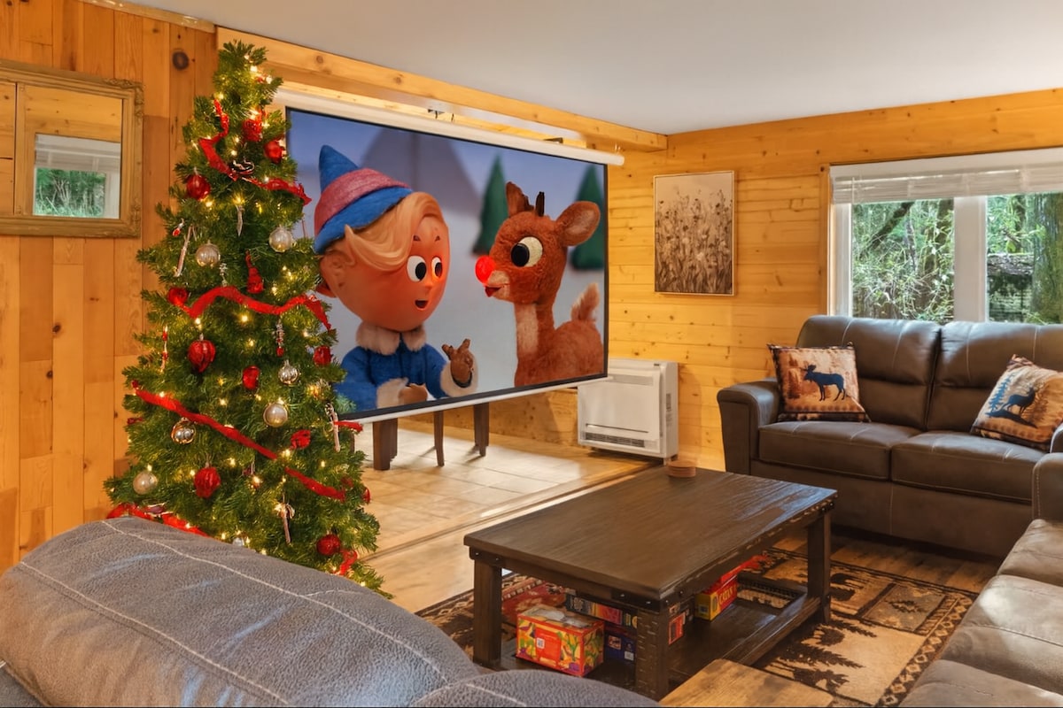 雷尼尔圣诞小屋,带热水浴缸-电影院-无线网络