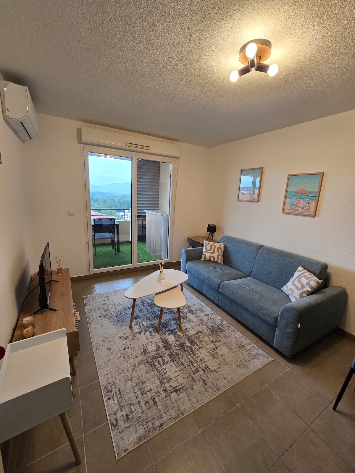 Venez passer un agréable séjour dans cet appartement de type F2, neuf, traversant, exposition sud. Vous pourrez apprécier sa belle terrasse avec ses équipements de qualité : climatiseurs et téléviseurs (Netflix) salon et chambre, couchage double supplémentaire canapé lit , lave vaisselle, lave linge, cafetière, wifi. Plage à 100m, commerces, restaurants, Casino, gare SNCF, Port de plaisance. Equipements enfant :lit et chaise haute à disposition sur demande. Parking à 4 min à pied (8€/jour)