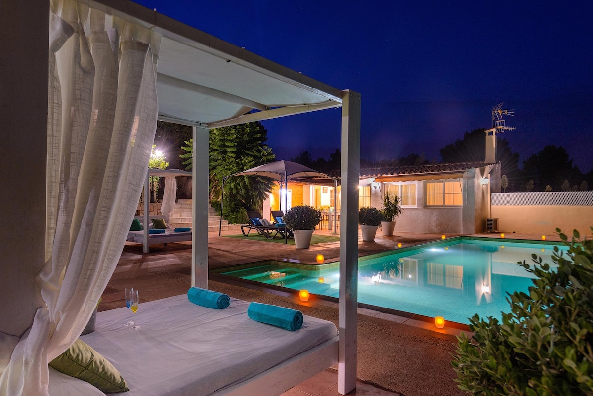 Can Seosol is centraal gelegen villa! Ideaal voor families een groepen. 5 minuten van het strand en alle hotspots (met de auto) * totaal 4 slaapkamers (allen met air heating) * Pellet stove fireplace * 3 net gerenoveerde douches * los appartement voor 2 (kinderbedje aanwezig) * Groot plot met bbq spot, zwembad en terrassen * Balinese stijl bar * WiFi 300mbs * Free parking faciliteit * Mooie centrale locatie; 10 minutes naar Ibiza stad, 5 min naar Playa d'en Bossa License: CCAA ETV1474E
