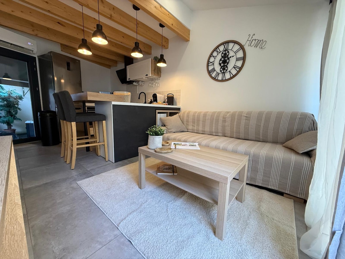 Détendez-vous dans ce logement calme et élégant. Vous vous trouverez dans un Mas en pierres dont le logement est la partie du milieu . Vous profiterez de la terrasse aménagée d environ 40 m2 … ainsi que de son petit jardin vous offrant une piscine 5x2 pour vous rafraîchir … Le logement est très lumineux composé d une pièce à vivre avec cuisine ouverte … 2 petites salles de bain ( 1 en bas avec baignoire, la seconde en haut avec douche) 2 chambres spacieuses .