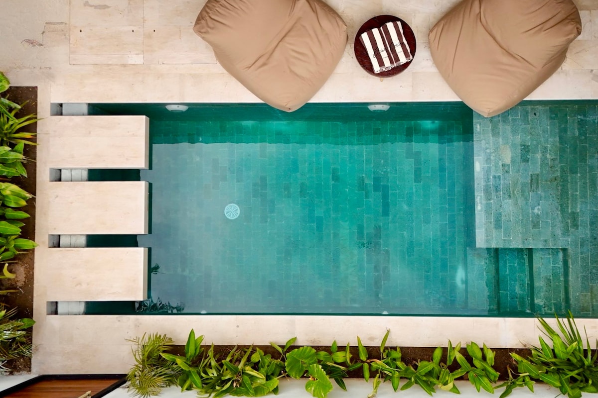 NUBA Villa: tu refugio tropical privado en Kuta Lombok Alójate en esta villa de diseño de un dormitorio de nueva construcción con piscina privada escondida en un rincón tranquilo del centro de Kuta Lombok. A pocos minutos de acogedoras cafeterías, estudios de yoga, restaurantes y tiendas boutique. Perfecto para parejas o viajeros solitarios que busquen relajarse, recargar energías y disfrutar de un espacio elegante con total privacidad.
