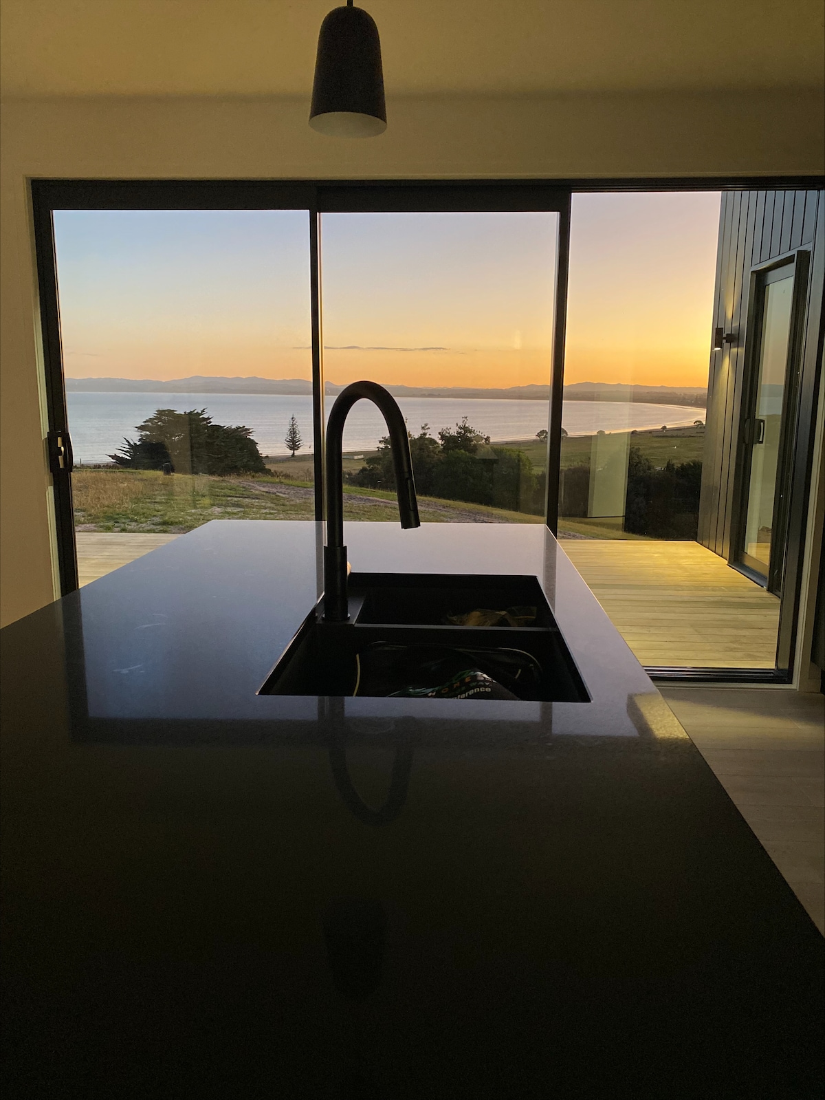 BachQ is fresh and new. Set back off the road it looks across Houhora Harbour to Mt Camel; the summit is visible from the master bedroom. To the south: children's playground 100m; Houhora Big Game Fishing Club and restaurant, wharf, boat ramp and EV charging station 200m; Houhora Heads (with historic Subritzky Homestead) 5km; Ninety Mile Beach 10km. To the north: Four Square, restaurant, takeaways, commercial wharf and petrol/diesel 500m; numerous beaches on the road to landmark Cape Reinga 70km