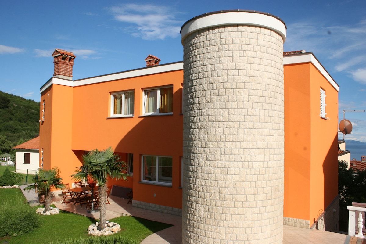 Apartment is situated in Martinski, small village near Labin. Nestled in the middle of luscious vineyards and numerous bike and horseback riding trails, it is ideal place for gateway for nature, wine and animal lovers. It can be starting point for exploring nearby little towns in this part of Istria (by foot, on bikes and electric bike rentable at site ). You can rest in big garden, take a walk around property (through fields, vineyards and woods) or ride a horse Trojan at our little ranch.