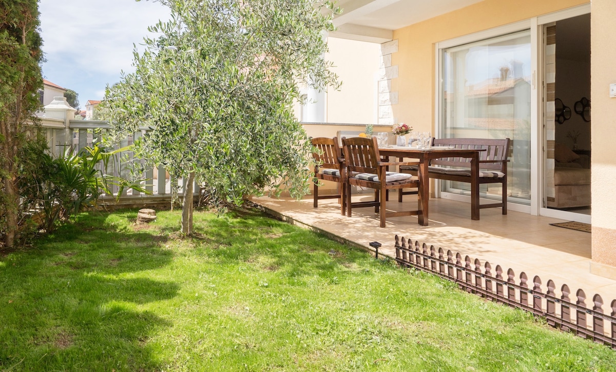 Apartment Murva is a spacious apartment located on the ground floor with a beautiful terrace overlooking olive tree garden where you can enjoy your morning coffee or summer dinners. Apartment has air conditioning, free wifi, free parking, flat tv screen, fully equipped kitchen, private bathroom with towels and hairdryer, comfy bedrooms with bed linen included. Apartment Murva is located 900m from the beach and 2km from the city centre.