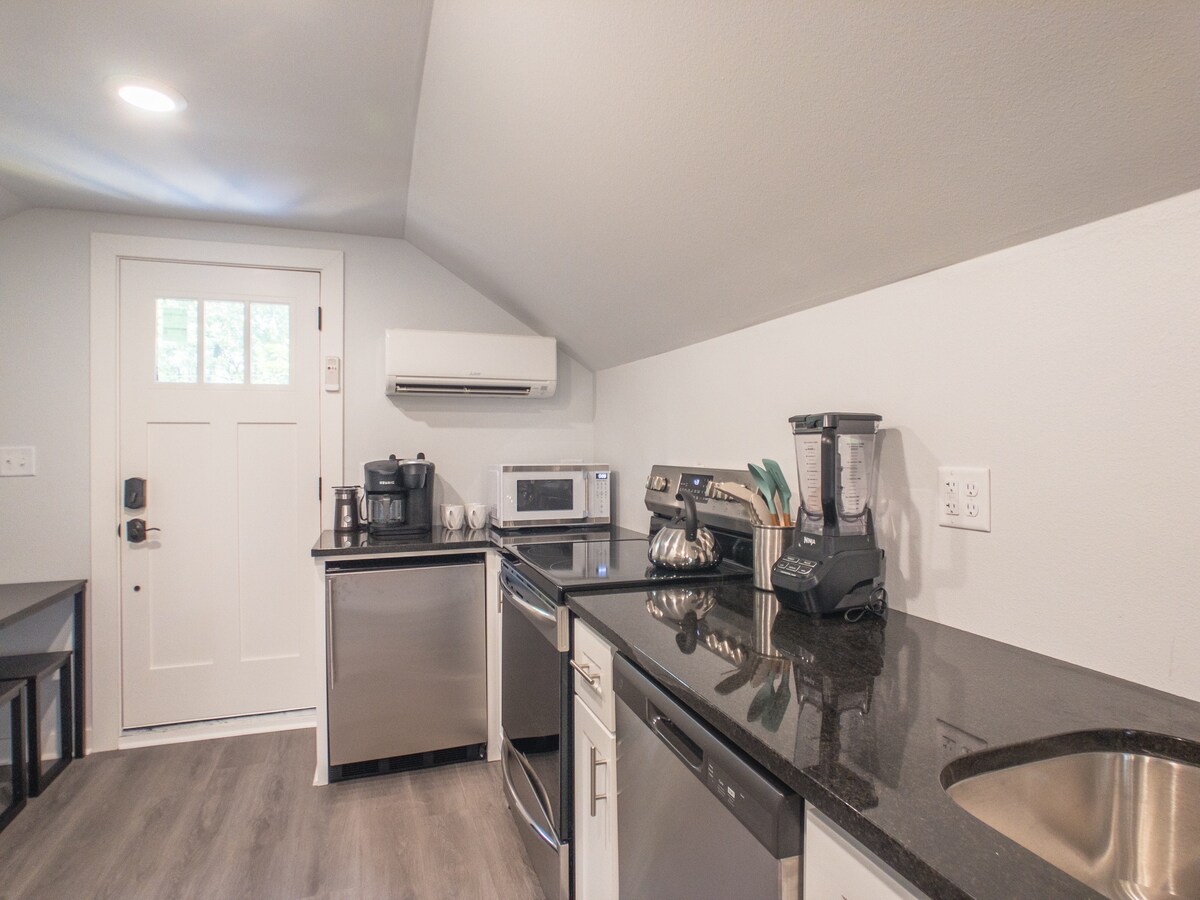 Gorgeous guest house located 3 blocks west of the State Capitol, it has 2 bedroom and 1 bathroom on an open floor plan, amenities include, granite countertop in the kitchen, custom design cabinets, ceramic tile on bathroom, living room and kitchen, electric fireplace, and tv above, the mantle on the chimney, each of the 2 bedrooms have a king size bed, you can relax listening to the waterfall. NEW, we have an EV universal wall connector Level 2 for your use!