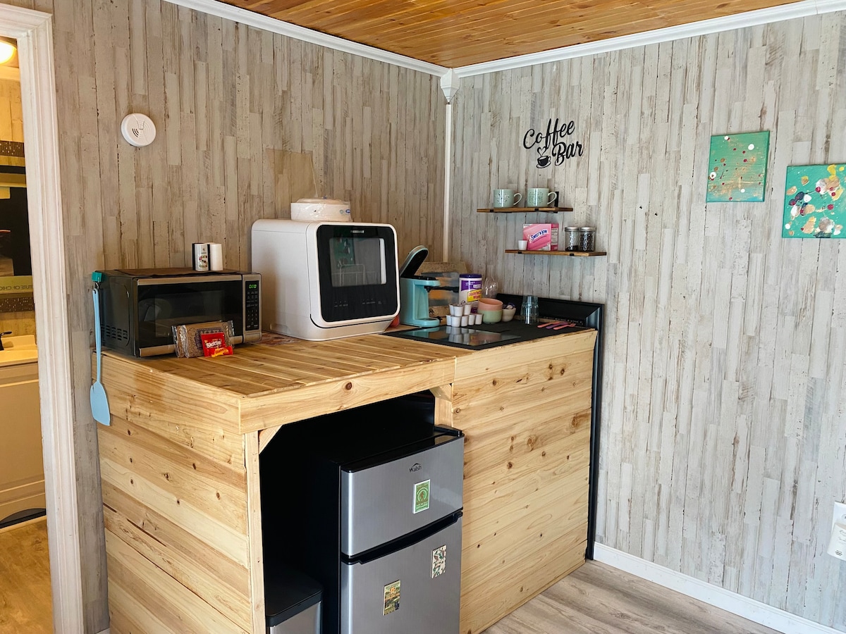 This is a peaceful tiny home tucked away on 12 acres. Thoughtfully designed for comfort, and prefect for couples, remote workers, and anyone looking for a small escape. Although the tiny home sits near the main house, the property offers plenty of privacy and room to explore. Step outside and enjoy the fresh air, open land, and quality time! We do allow your dogs to roam freely but we do not allow any cats due to family allergies.