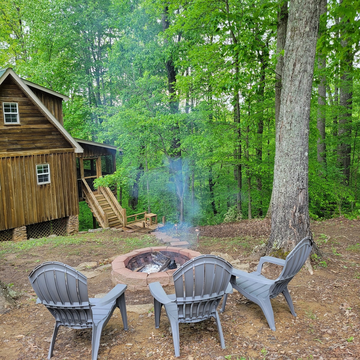 平均评分 4.76 分(满分 5 分),共 46 条评价坎伯兰湖(Lake Cumberland)小屋坐落在树林中。
