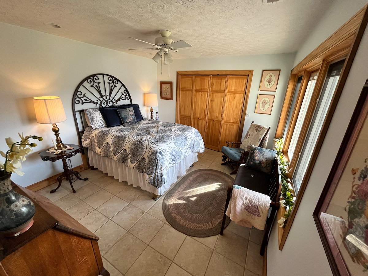 No Lake Access 1,000 sq ft home, 2 BR 1 Bath, 400 sq ft deck, 200 sq ft screen porch with lake views Wifi (20mb on average) Youtube TV Firepit Grill Desk Outdoor Furniture Pets allowed (See Rental Agreement for exceptions) Dog cage with waterproof mats, dog bowls, and feeding mat provided High chair and pack n play are available upon request (please let me know when booking) Relax with the whole family at this peaceful place to stay, with amazing views especially sunsets