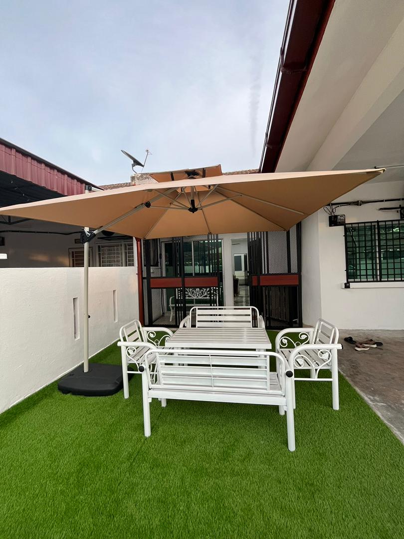 H&K Residency is a double storey end lot link house with 4 bedrooms located in Klang. It can comfortably accommodate 7 occupants for a comfortable sleep with 3 bathrooms, 1 living hall + dining, kitchen, spacious tiled porch and backyard. All bedrooms and living hall have fans and air-conditioners. Residency is well lit inside out. The spacious porch allows 2 cars to be parked inside and the spacious backyard will be an excellent ground for a barbeque. Wi-Fi and Netflix provided with 65' TV.