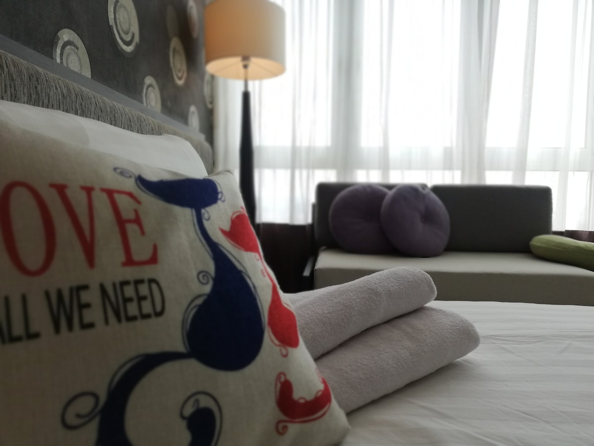 Welcome our cozy modern style 2pax studio!! ❤️ Our location is at the heart of Johor Bahru town only 5min distance from CIQ checkpoint 🚗 It is very suitable for couples , small families, business travelers or tourist 🌹 Our unit with beautiful high floor view which have uninterrupted view for JB town city view 🥰 And this place also surrounded by convenient shop , close to night life, public transport, nice food areas, massage center , restaurant , shopping mall and etc 🌻 Come to enjoy ^^