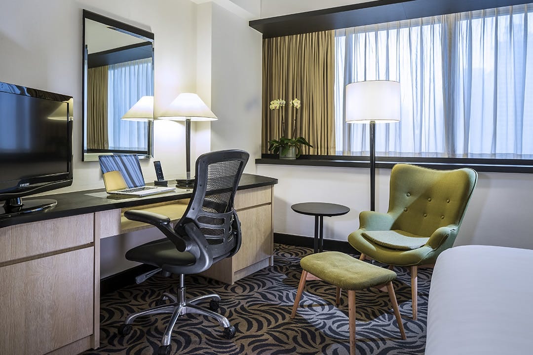 Unwind your stay in Hotel Royal Plaza on Scotts's roomy Deluxe King Room, where chic design meets cozy comfort. Relax under the room's walk-in rainshower and sink into our plush Simmons Dream Bed, ensuring you drift into restful slumber every night. Size: 32sqm | 344sqft Room Maximum Capacity: 2 Adults & 1 child (below 11-years-old in existing bedding)*
