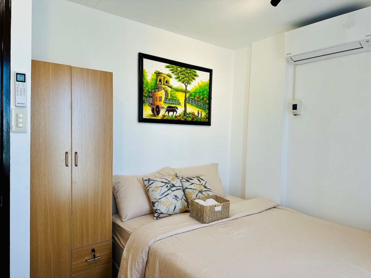 Welcome to The Meydan Suites at Azure North, a Japandi-inspired studio retreat in San Fernando, Pampanga. Just 1.5 hours from Manila, our spacious 2-bed studio comes with a full kitchen, one bath, and a private balcony on the quiet side of Azure. For ₱200 per guest per shift, you can enjoy resort-style amenities including the wave pool, the beach pool, and leisure facilities. It is the perfect sulit escape for couples, families, or barkada.