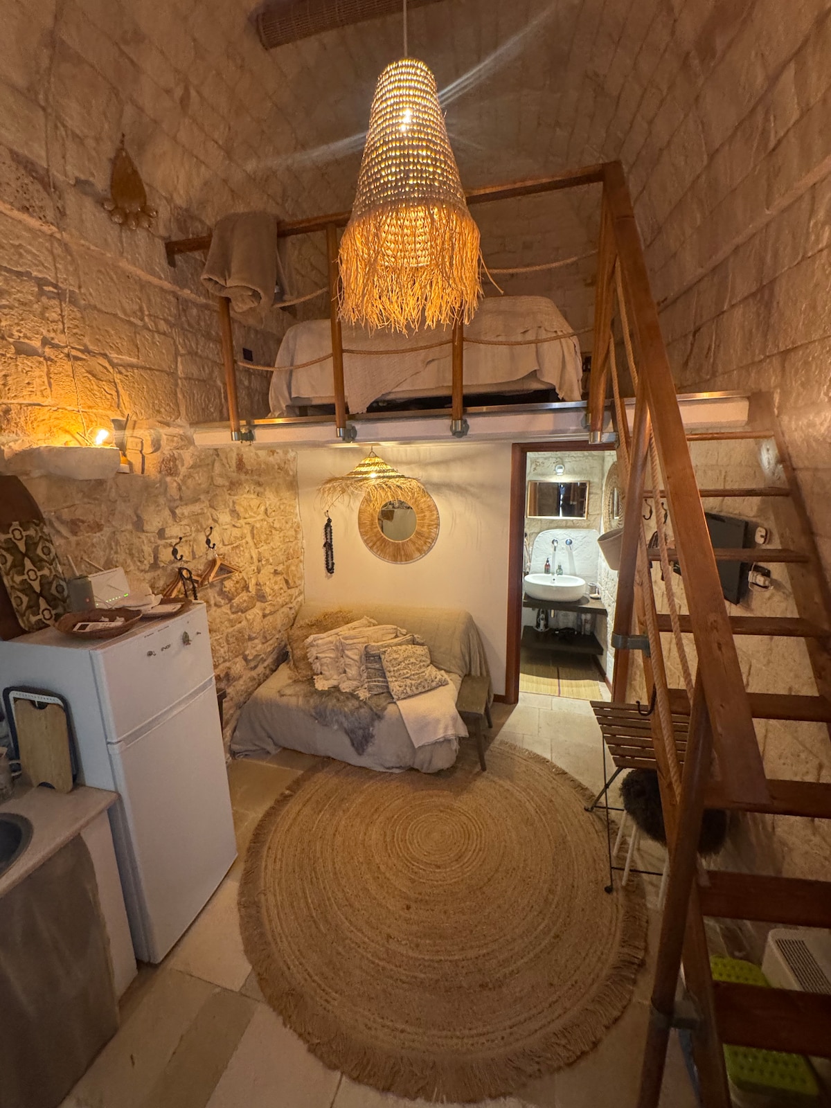 Situato nel pieno centro storico di Locorotondo, Ughetto, è una deliziosa suite: la zona giorno è fornita di ripostiglio, angolo cottura, tavolo da pranzo, frigorifero e TV. Un'alcova adornata di un antico arco in pietra accoglie il divano letto di supplemento alla zona notte situata nella parte est e fornita di letto matrimoniale, stand appendiabiti e TV. Il bagno è dotato di ogni comfort. L'intero appartamento è provvisto di riscaldamento, aria condizionata e wifi gratuito.